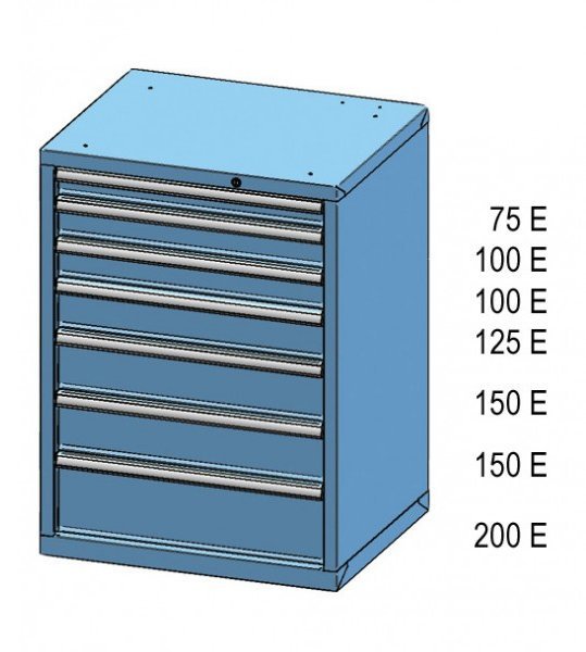 Drawer cabinet, 7x drawers, height 990, width 731, depth 630 mm. Internal dimensions of the drawer 612 x 459 mm.