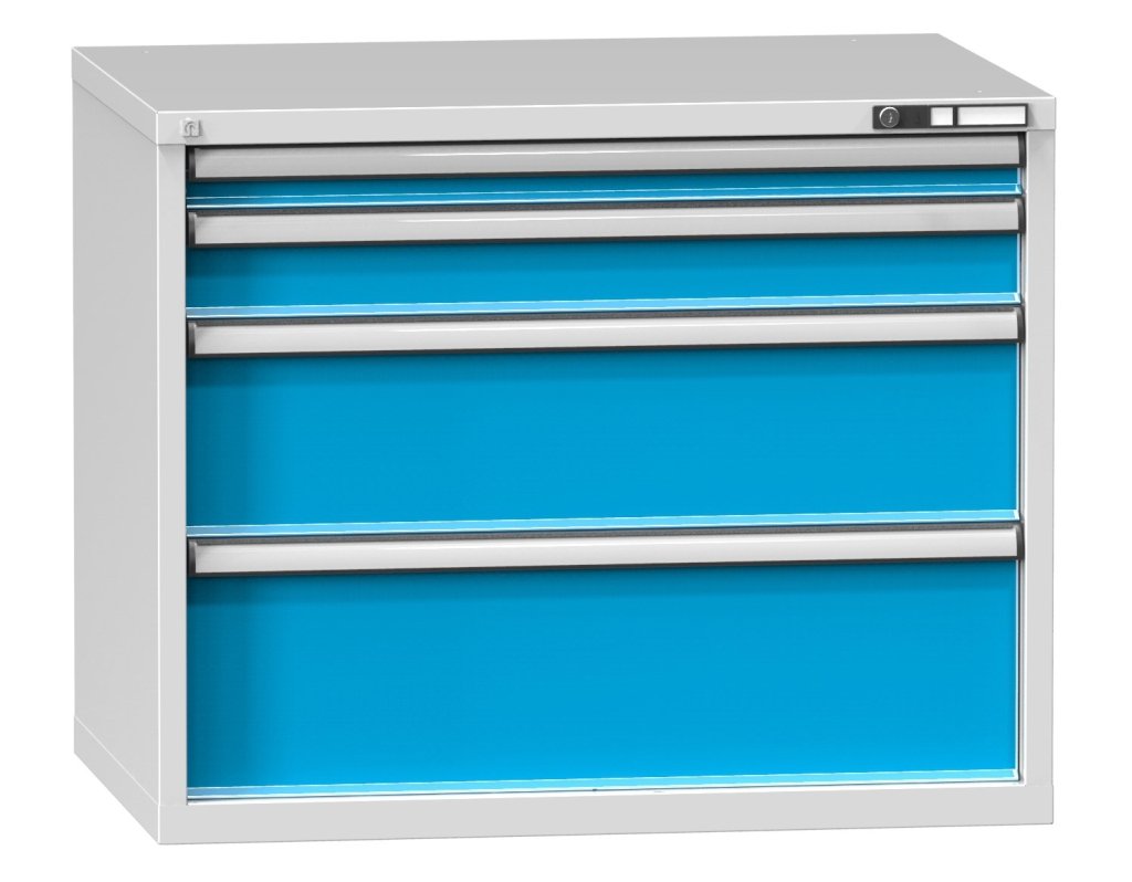 Drawer cabinet, 4x drawers, height 840, width 1037, depth 780 mm. Use in table sets with a tabletop depth of 800 mm. Internal dimensions of the drawer 918 x 612 mm.