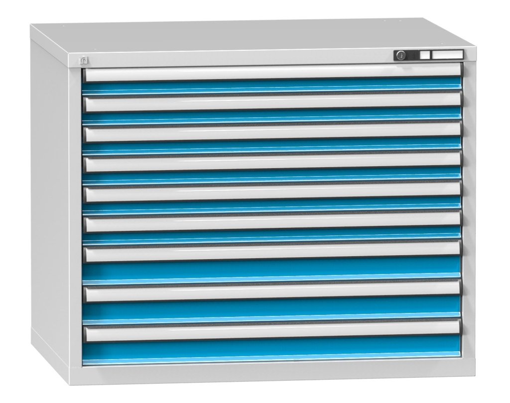 Drawer cabinet, 9x drawers, height 840, width 1037, depth 780 mm. Use in table sets with a tabletop depth of 800 mm. Internal full description and parameters