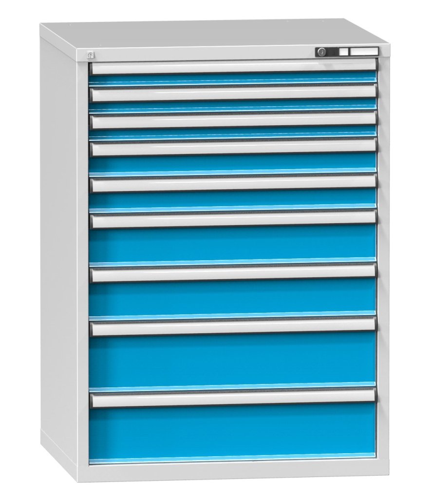 Drawer cabinet, 3x 75E drawer, 2x 100E drawer, 2x 150E drawer, 2x 200E drawer, height 1215, width 884, depth 780 mm. Internal dimensions of the drawer 765 x 612 mm.