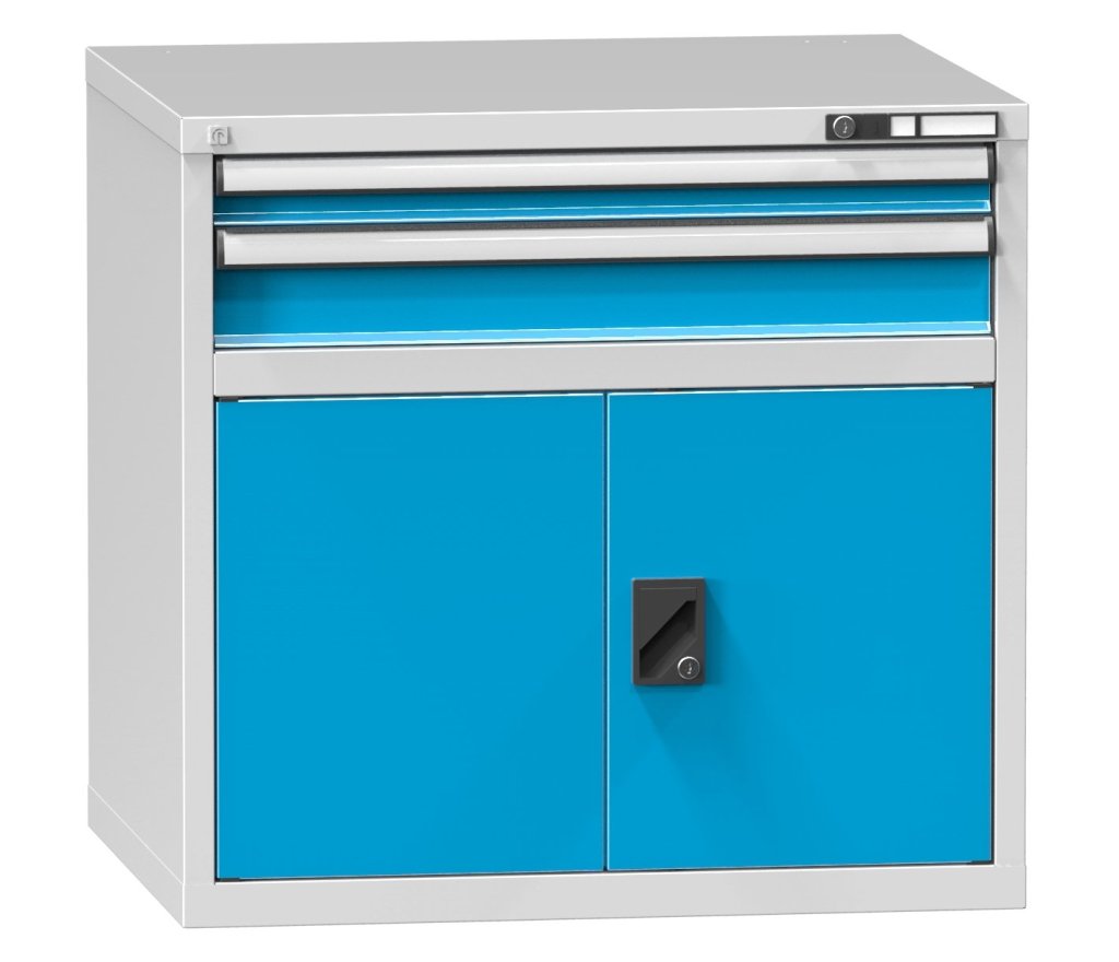 Drawer cabinet, 1x 550 mm door + 1x adjustable shelf, 1x 75E drawer, 1x 125E drawer, height 840, width 884, depth 780 mm. Use in full description and parameters