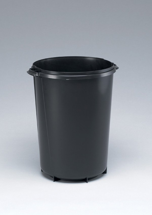 Round trash can. Volume 40 l. Handles for convenient and simple transport. Dimensions h. 520 mm x diameter 425 mm. Color black.