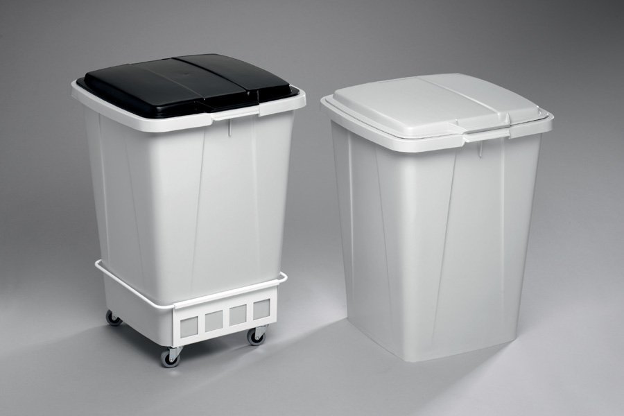 Movable base made of white painted metal for one DURABIN 90 waste bin with four wheels. full description and parameters