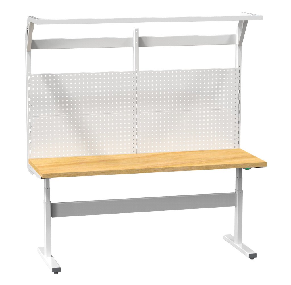 Electrically adjustable ERGO table with extension, height 660 - 1100 mm, width 2000 mm, tabletop depth 700 mm. The table stands out with its robust frame for absolute rigidity, maximum load-bearing capacity and workplace stability. Worktop beech multiplex 40 mm or laminate board 38 mm thick.