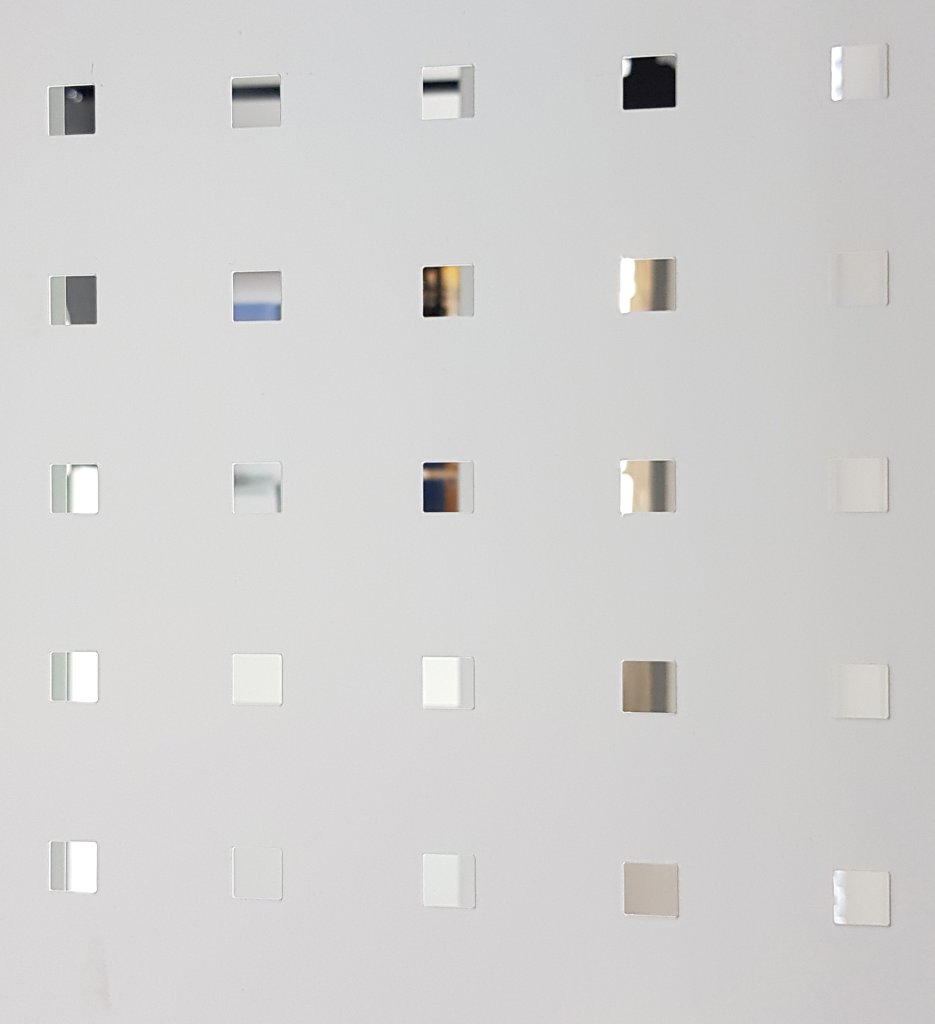 ESD perforated panel, ideal for hanging tool holders and quick access to fasteners. The ESD version provides reliable protection against electrostatic discharge. Dimensions 2000 x 1000 mm, thickness 1.4 mm, square holes 10 x 10 mm, hole spacing 38 x 38 mm, color gray RAL 7035.