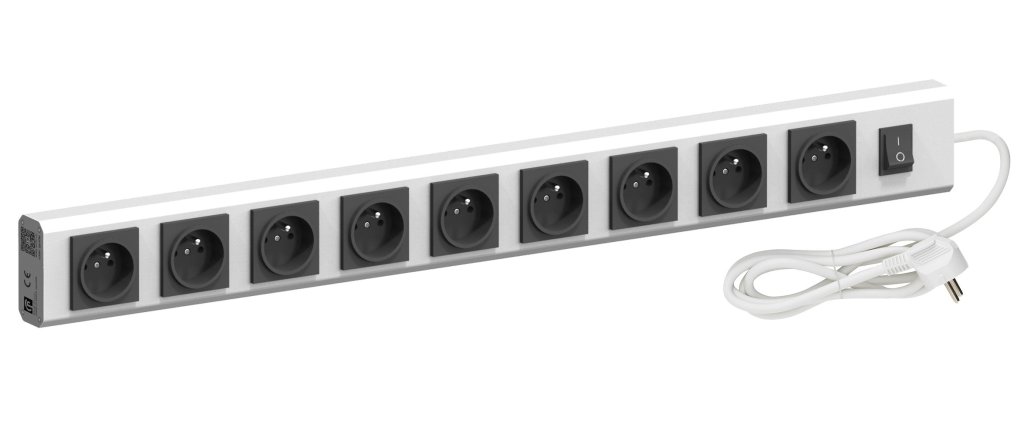 Extension lead 700 mm, 9x 230V / 16A socket, 1x 230V / 16A switch, 3 m power cable with outlet from the side of the profile. Width full description and parameters