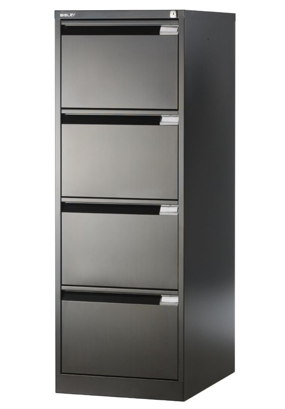 Four-drawer metal filing cabinets for documents or hanging files in A4 or Foolscap format, width 413 or 470, height 1321, depth