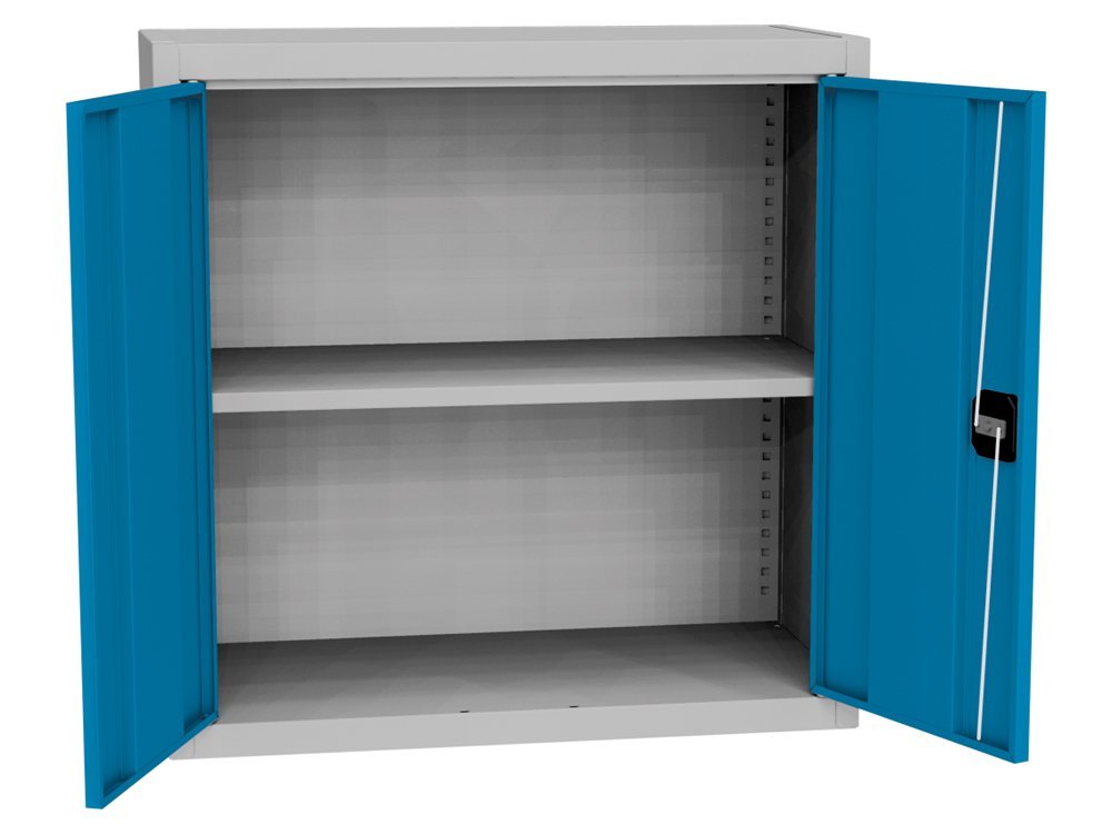 Cabinet with solid doors, height 800 x width 505 x depth 400 mm. Locking on a cylinder lock with a wheelbase mechanism. 1 x adjustable steel shelf (load capacity 60 kg). The possibility of replacing solid doors with doors with glass filling, with wire filling or laminate doors in the shade of beech, birch or cherry. Body color RAL 7035 light gray.