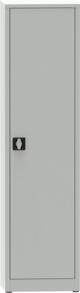 Cabinet with solid doors, height 1950 x width 505 x depth 400 mm. Locking on a cylinder lock with a wheelbase mechanism. 4 x adjustable steel shelves (load capacity 60 kg). The possibility of replacing solid doors with doors with glass filling, with wire filling or laminate doors in the shade of beech, birch or cherry. Body color RAL 7035 light gray.