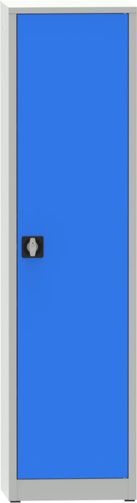 Metal welded cabinet, width 508, height 1950, depth 400 mm, 4 adjustable shelves. Body color RAL 7035 light gray, doors RAL 7035 light gray and RAL 5012 blue.