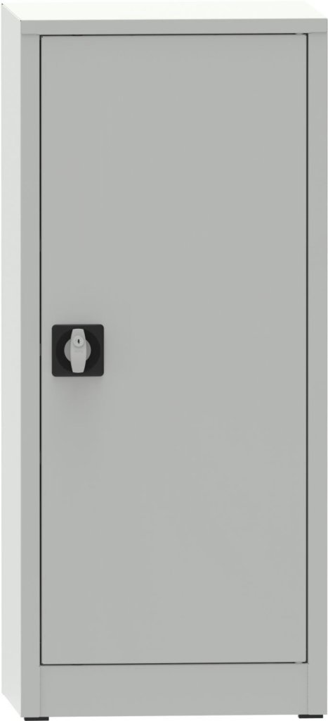 Metal welded cabinet, width 508, height 1150, depth 600 mm, 2 adjustable shelves. Body color RAL 7035 light gray, doors RAL 7035 light gray and RAL 5012 blue.