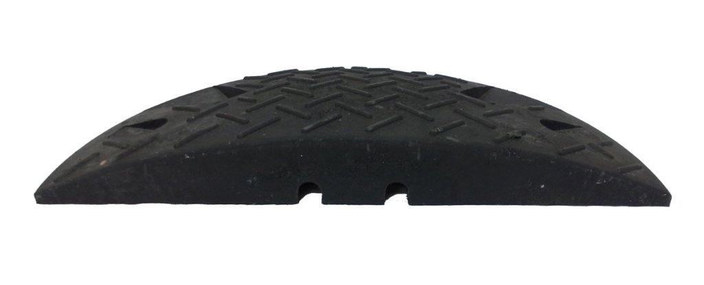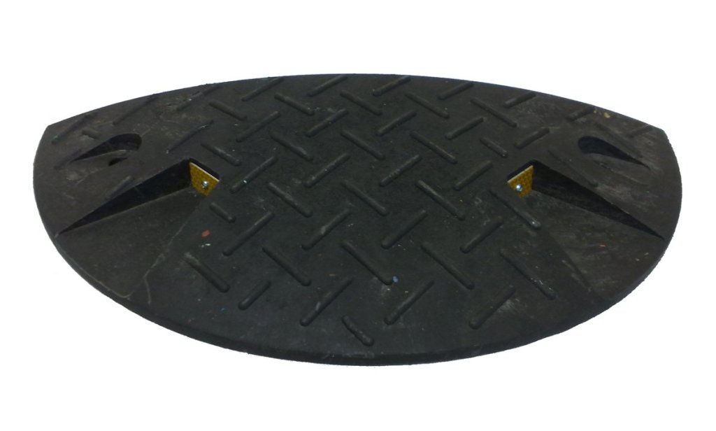 Construction-traffic equipment to reduce undesirable vehicle speeds or to comply with permitted vehicle speeds on local roads. Use – roads, parking lots, entrances to buildings. Color black, for a speed of 10 km/h. Made from a durable recycled compound. Highly visible at night. Height 60 x width 500 x depth 430 mm.