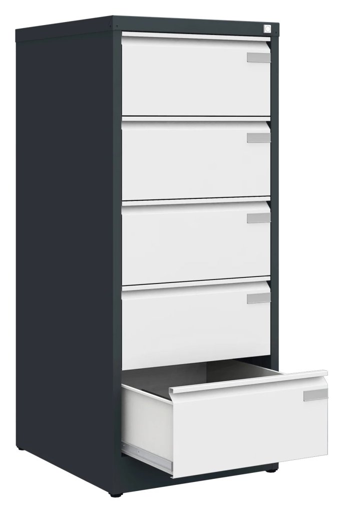 Six-drawer metal filing cabinets for A5 format envelopes (the archived document can be up to 235 mm wide), total width 568, height 1321, depth 622 mm, various colors. In the color light gray RAL 7035 in stock.