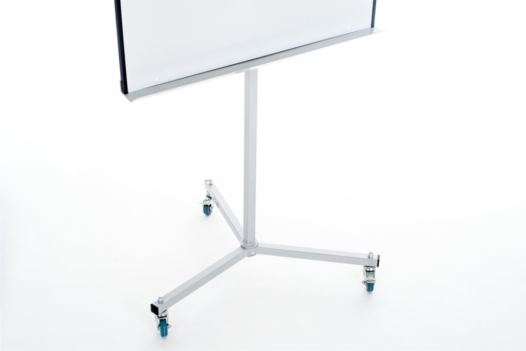 Mobile folding flipchart with magnetic surface. Very stable base with three wheels and manually adjustable height. Hooks for full description and parameters