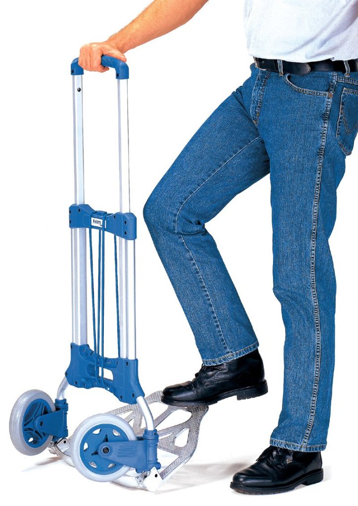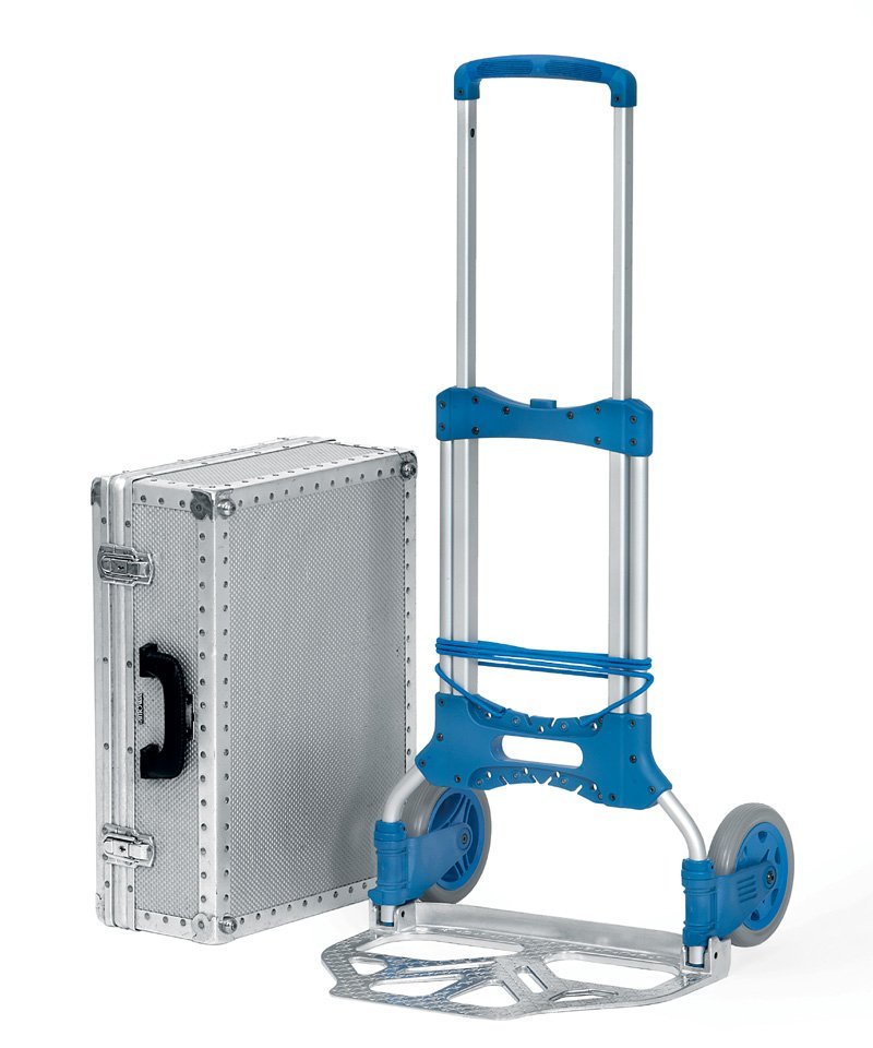 Folding aluminum handcart made in Germany, folding shovel made of aluminum, aluminum-steel construction, some parts made of blue full description and parameters