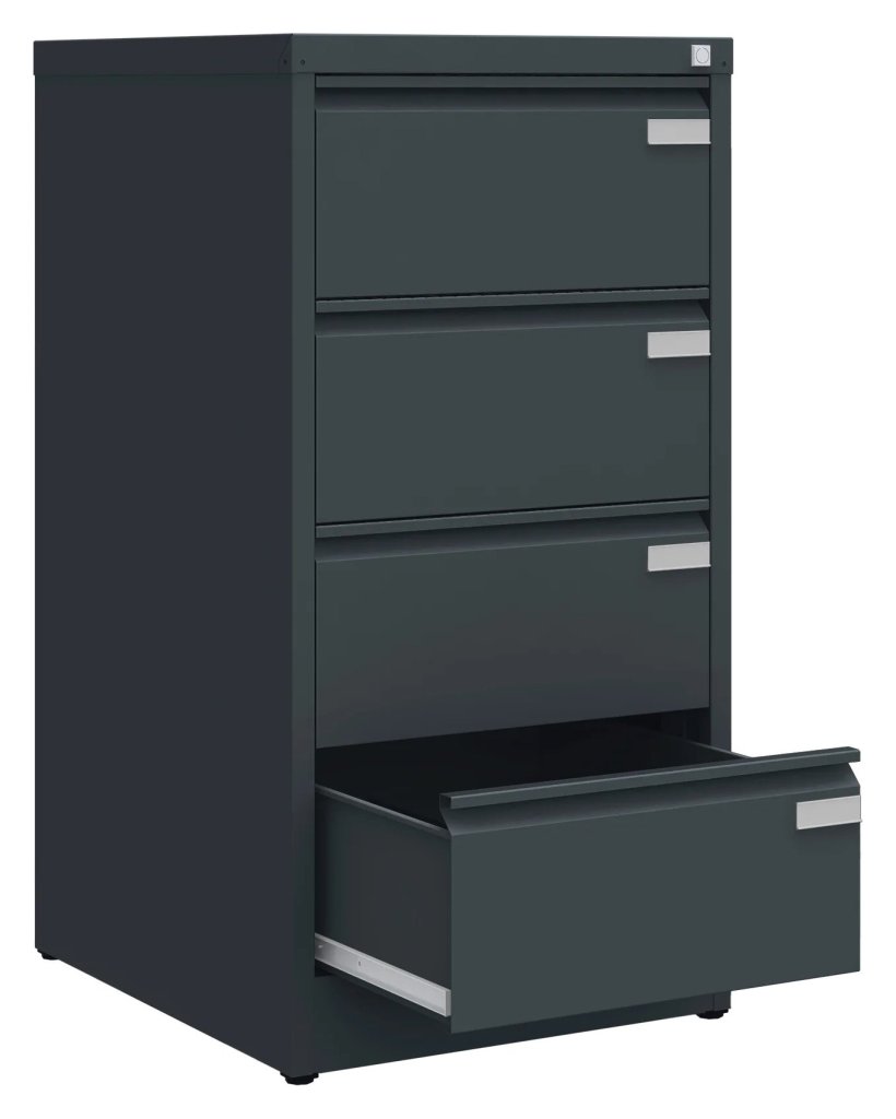 Six-drawer metal filing cabinets for A5 format envelopes (the archived document can be up to 235 mm wide), total width 568, height 1321, depth 622 mm, various colors. In the color light gray RAL 7035 in stock.