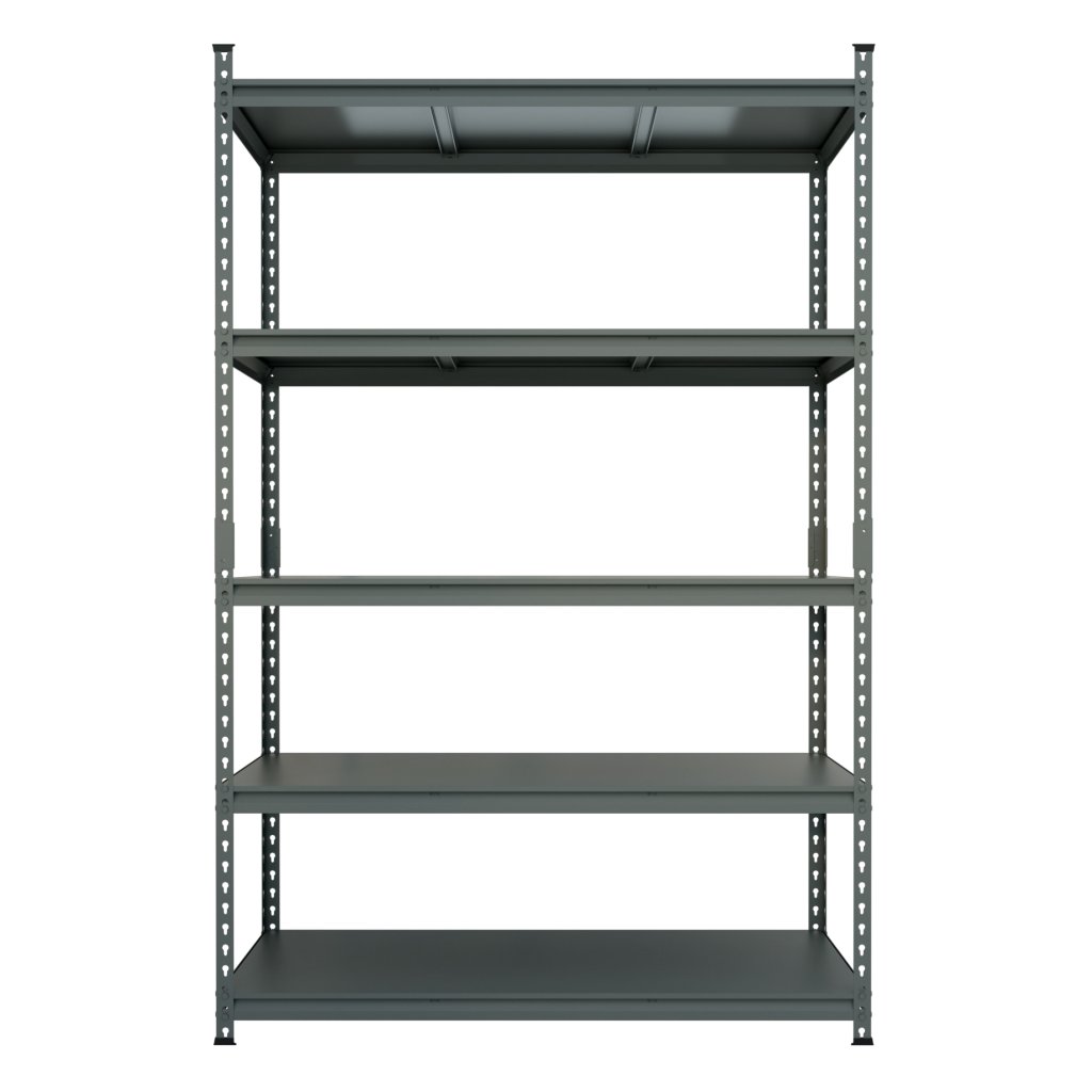 Universal all-metal screwless shelf suitable for workshops, warehouses, offices, garages or archives. Made of high-quality steel sheet, surface treated with gray powder paint. 5x adjustable shelves with reinforcement. Shelf load capacity 150 kg. Shelf dimensions (h x w x d) 1830 x 1200 x 500 mm. Supplied disassembled.