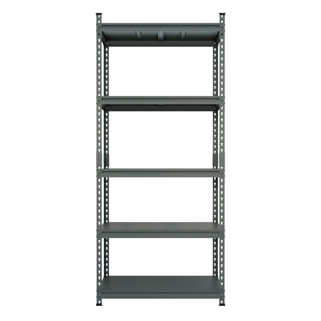 Universal all-metal screwless shelf suitable for workshops, warehouses, offices, garages or archives. Made of high-quality steel sheet, surface treated with black powder paint. 5x adjustable shelves with reinforcement. Shelf load capacity 175 kg. Shelf dimensions (h x w x d) 1830 x 800 x 500 mm. Supplied disassembled.