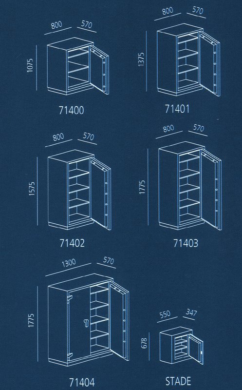 Genf 71401 fireproof safe for documents, fire resistance test 120 min., drop test, safety class I. External dimensions - H 1375 x W 800 x D 570 mm, internal dimensions - H 1115 x W 660 x D 334 mm. Weight 430 kg.