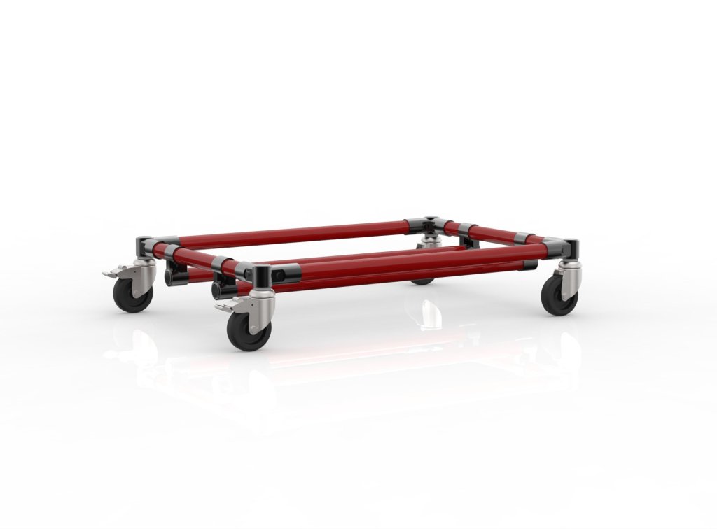 A handling trolley made from a tubular system is suitable for various handling purposes in warehouses and workshops. The chassis includes 2 swivel casters with brakes and 2 swivel casters without brakes, with a diameter of 75 mm, allowing easy handling of items. The internal dimension is designed for a crate measuring 600 x 400 mm. Dimensions are 678 x 478 x 138 mm.