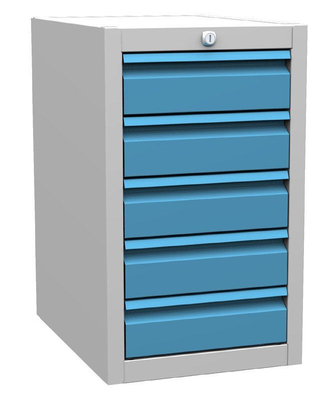 Five-drawer hanging container for MTS tables, width 360, height 600, depth 500 mm. Body color RAL 7035 light gray. full description and parameters