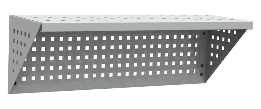 Hanging metal shelf, color silver RAL 9006. Height 318 x width 1000 x depth 315 mm. Shelf capacity 40 kg. full description and parameters