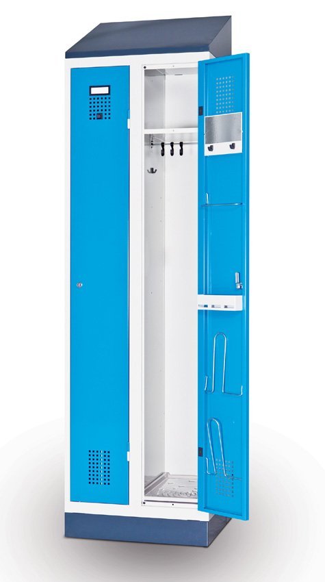 Locking - by default, the wardrobe cell is locked with a single-point bolt with a cylinder lock and two keys. It is also possible to replace the lock with a rotary lock for a padlock at no extra charge. |