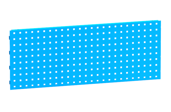 Perforated panels for tables, hang in 8NS webs, square holes 10 x 10 mm, hole spacing 38 x 38 mm. Height 380 mm, width for the module 1200 mm.