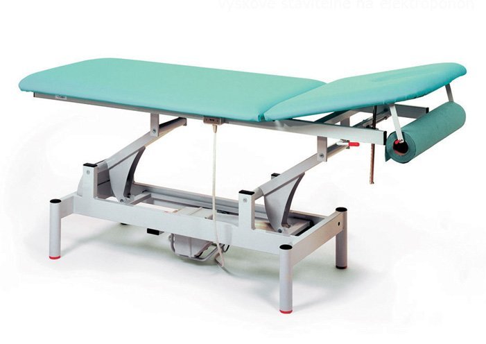 GE2 deck chair with electric drive, two parts, height adjustable. The rehabilitation, examination (massage) couch is intended for clinical and physical examination of patients in outpatient clinics, general practitioner and specialist doctors' offices. In rehabilitation facilities, they are used for physiotherapy. It is intended for patients of hospitals, clinics, specialized treatment institutes, spas, homes for the elderly, massage parlors, wellness centers and other facilities under the continuous supervision of medical personnel. The lounger is also suitable for changing rooms and first aid rooms. It can also be used for minor surgical interventions without anesthesia, when the patient is fully conscious.