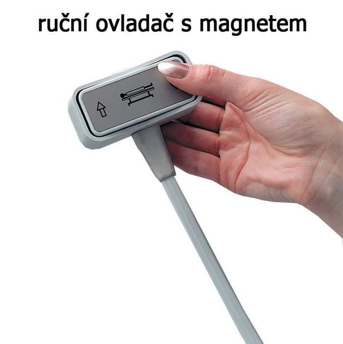Height-adjustable deck chair with electric drive - height adjustment 45 - 90 cm, length 195 cm, width 68 cm, load capacity 150 kg. Positionable back part 64 cm adjustable from 0° to 60°, safety switch box. Hand or foot control.