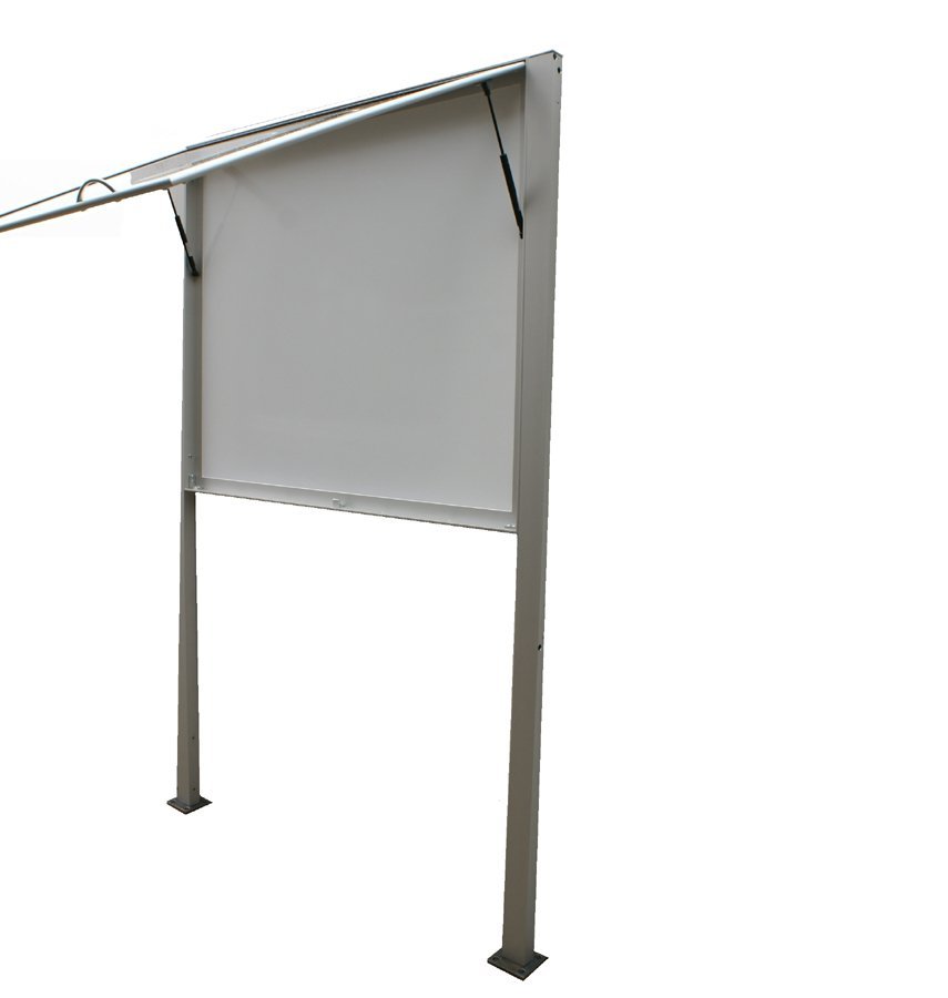 The double-sided aluminum magnetic information display case with struts consists of an all-aluminum frame with an anodized surface, a door with durable plexiglass and a magnetic sheet as the background of the display case. It is suitable for interior as well as exterior use. Dimensions h. 1000 x w. 1150 x d. 120 mm. For hanging 30 pieces of A4 paper.