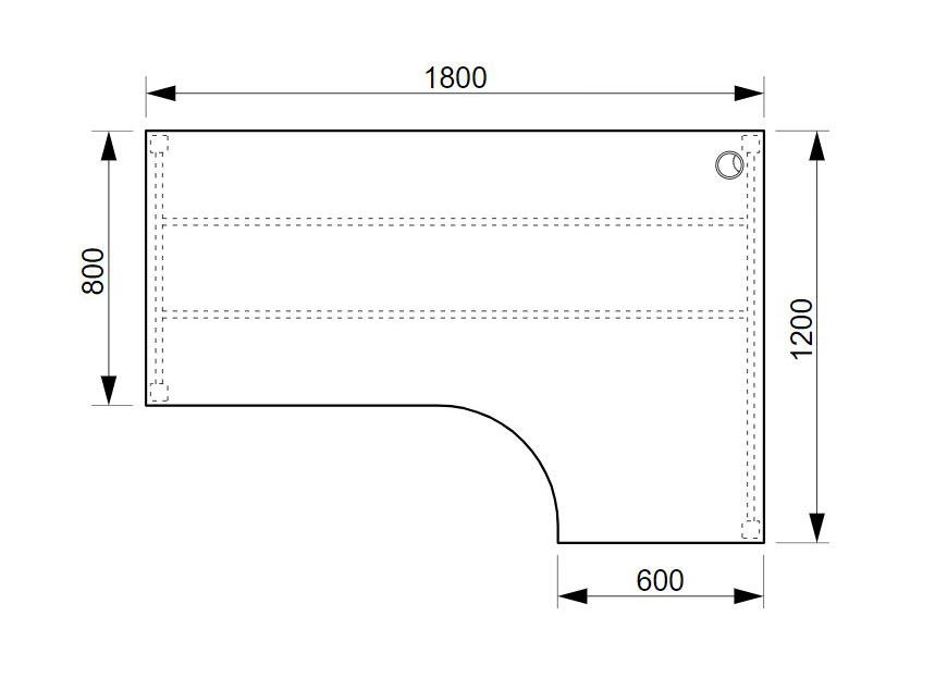 UNI office corner desk with dimensions 755 x 1800 x 1200 mm. The worktop is equipped with an ABS edge to help protect the tables from damage. The tables include a practical grommet that leads all the cables under the table, where they can be handled by practical holders.