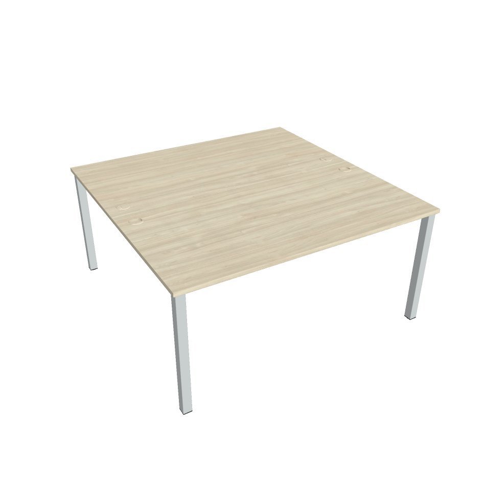 Office desk double UNI O with dimensions 755 x 1400 x 1600 mm. The worktop is equipped with an ABS edge to help protect the tables from damage. The tables include a practical grommet that leads all the cables under the table, where they can be handled by practical holders.