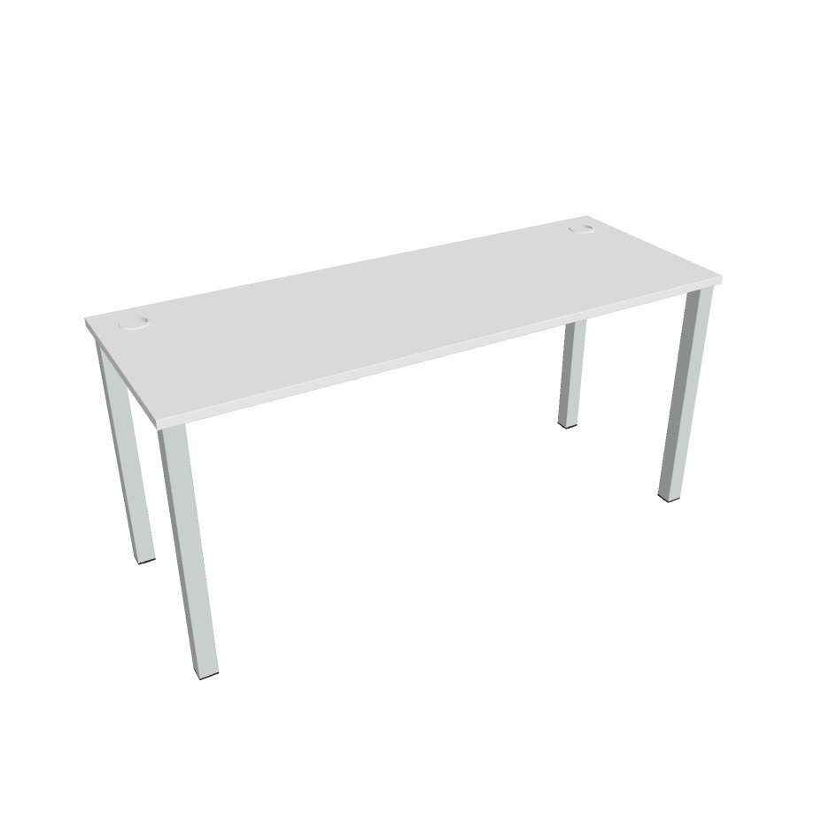 UNI O office desk with dimensions 755 x 1600 x 600 mm. The worktop is equipped with an ABS edge to help protect the tables from damage. The tables include a practical grommet that leads all the cables under the table, where they can be handled by practical holders.