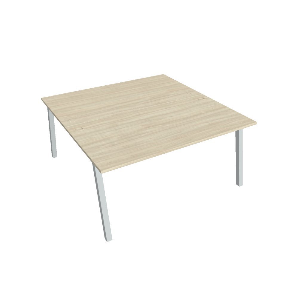 Office desk double UNI O with dimensions 755 x 1600 x 1600 mm. The worktop is equipped with an ABS edge to help protect the tables from damage. The tables include a practical grommet that leads all the cables under the table, where they can be handled by practical holders.