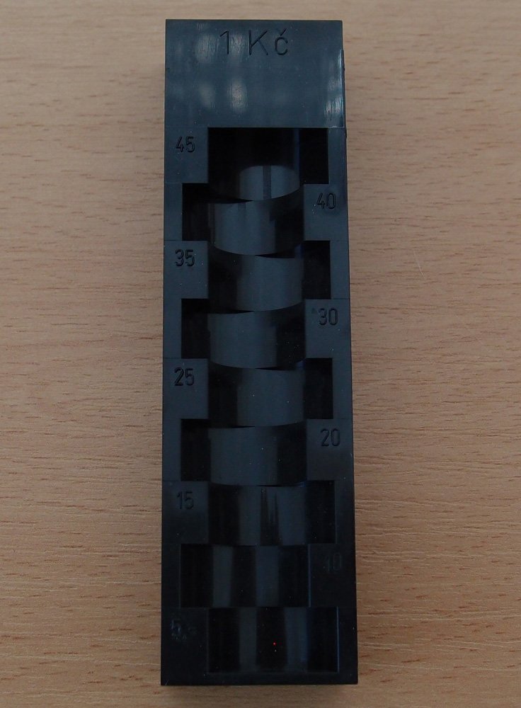 Spare segment for coin compartment worth 1 CZK, for 45 coins (45 CZK), dimensions 115 x 32 x 19 mm. full description and parameters