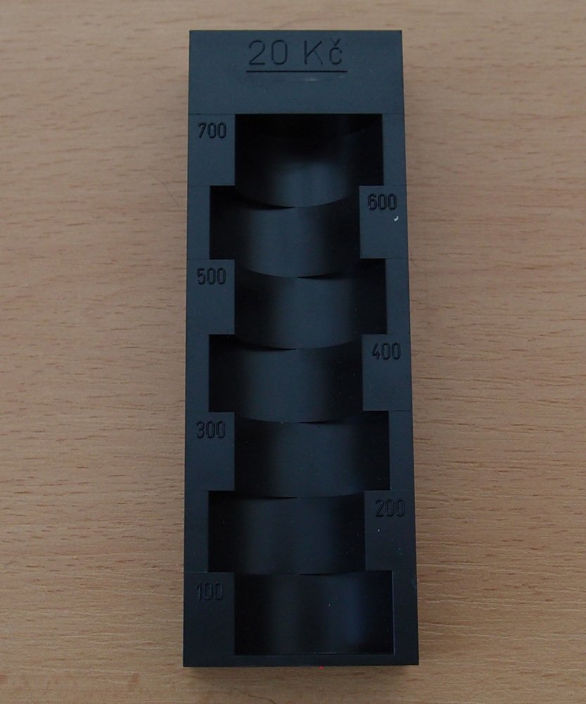 Spare segment for coin compartment worth 20 CZK, for 35 coins (700 CZK), dimensions 115 x 40 x 19 mm.