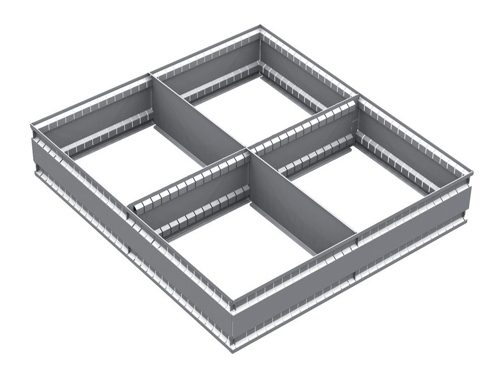 Internal division of sockets VND EPO 12A. Installation is possible in drawers where the height of the drawer front is 120 and 150 mm. Dimensions 95 x 538 x 457 mm.