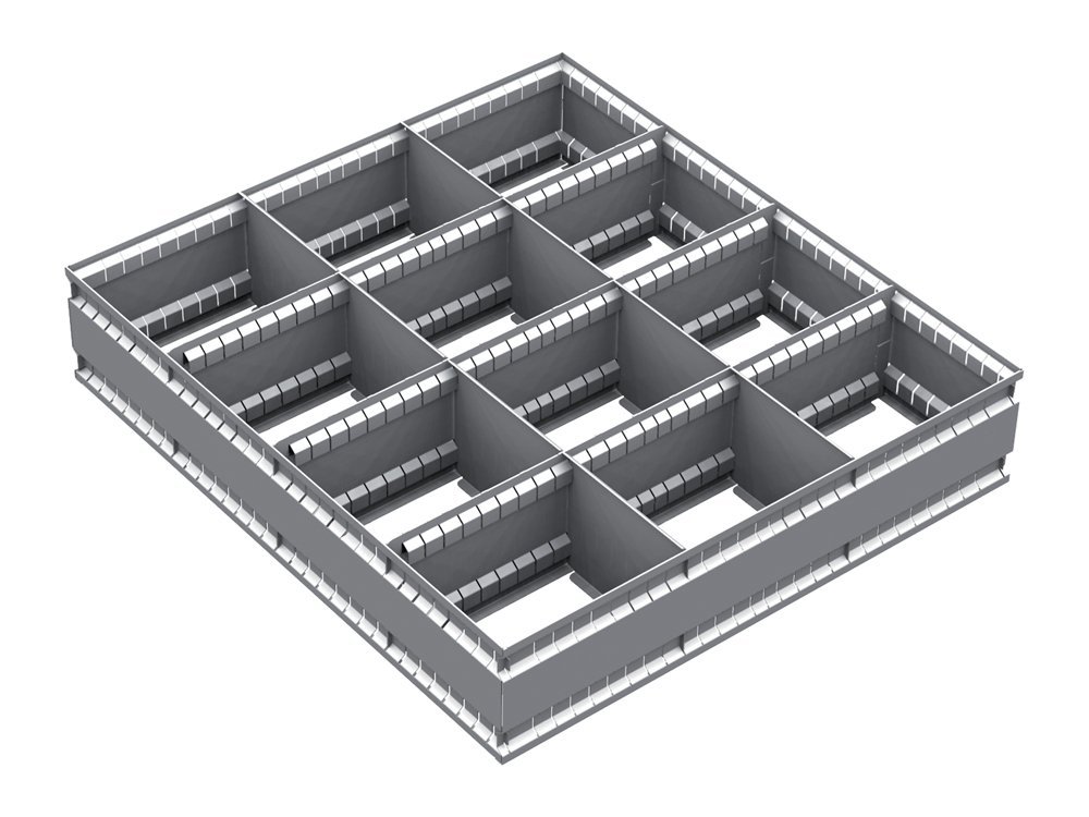 Internal division of VND EPV 12C sockets. Installation is possible in drawers where the height of the drawer front is 120 and 150 mm. Dimensions 95 x 538 x 357 mm.