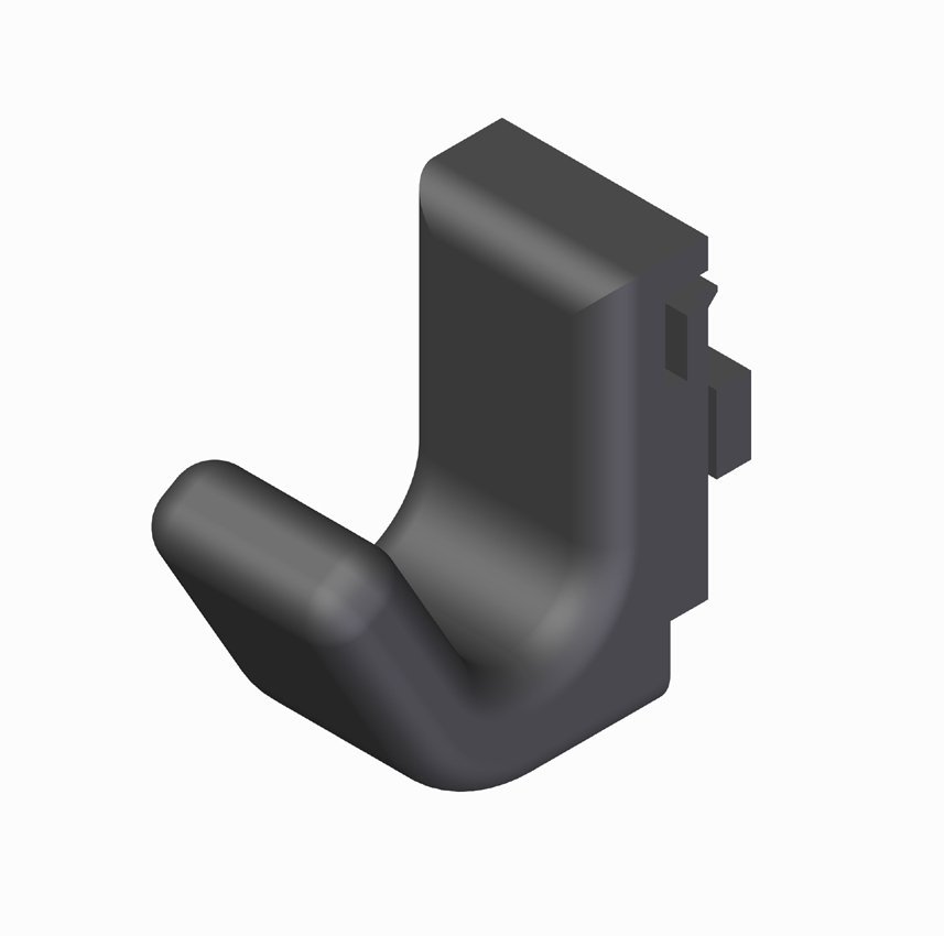 Plastic hook, hangs in the dividing wall of the wardrobe.