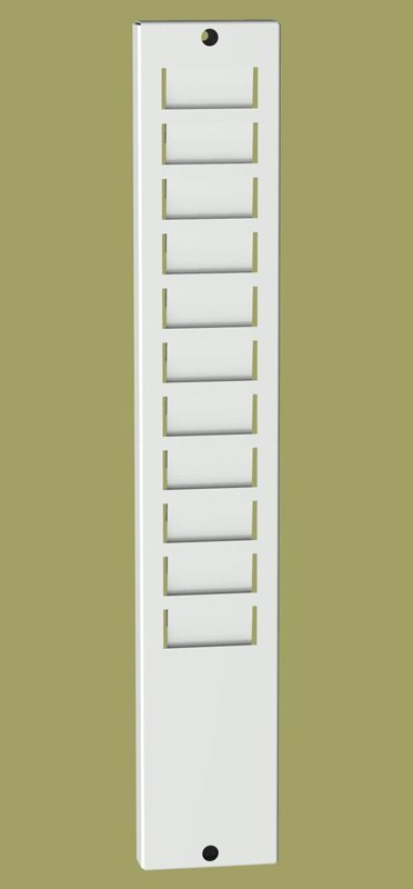 Metal file for scheduling, attendance and identification cards in workshops, entrance halls, etc. Height 277 x width 92 x depth 25 mm. For 3 cards, color light gray. Other colors by agreement for an additional fee.