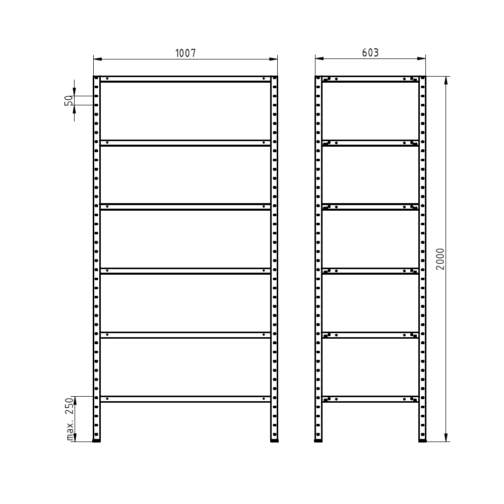 Extension screw rack intended for wide use in warehouses, archives, garages, offices and other storage areas. Height 2000, width 1000, depth 600 mm, 6 shelves. Shelf capacity 250 kg. Simple assembly using screw connections. Attention, only one web - it serves as an extension of the base racks.