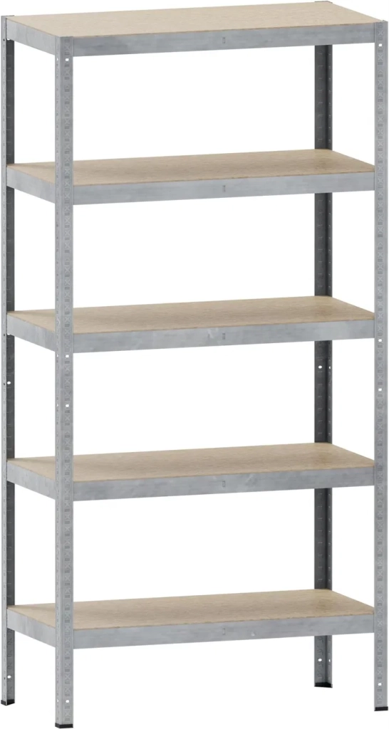 Metal screwless rack intended for wide use. The load capacity of the shelf is set to a maximum uniform load of 150 kg and is used to store medium-heavy objects. Shelf depth 450 mm, width 900 mm, height 1800 mm, 5 shelves.