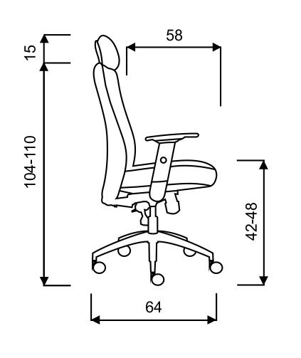 Swivel office chair, high backrest adjustable in height, SYS synchronous mechanism with lateral adjustment of backrest stiffness, black nylon cross, 60 mm wheels, gas piston, price without armrests.