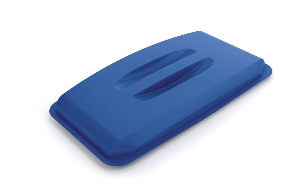 Durabin 60 plastic trash can lid with handle for easy removal. Color blue. full description and parameters