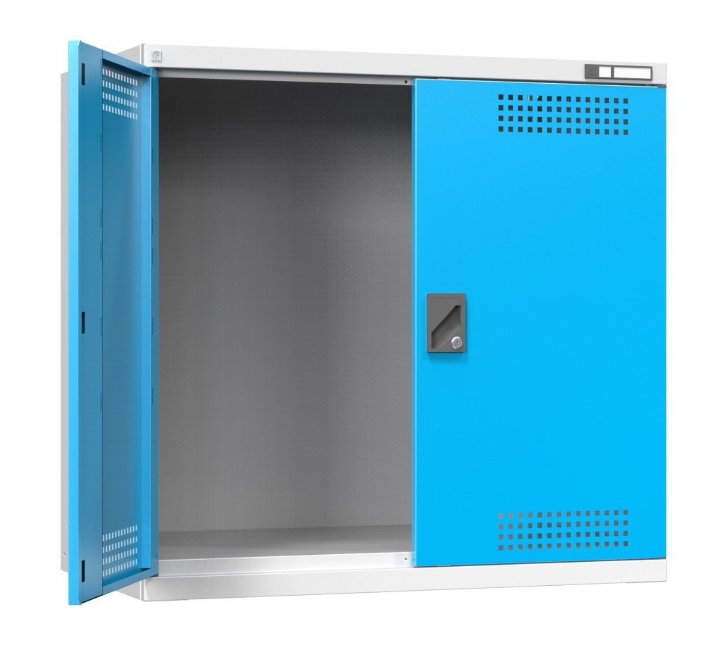 Liquid storage cabinet with swing doors, 25 mm perforations for height adjustment of shelves, full door with reinforcements for perforation, load capacity 300 kg. Height 1000, width 1044, depth 625 mm. The cabinet doors are equipped with ventilation holes. Can be retrofitted with shelves, catch basins and perforated panels. A cabinet for liquids equipped with a 3 mm thick tub allows safe storage of aggressive substances and reduces the risk of their leakage.