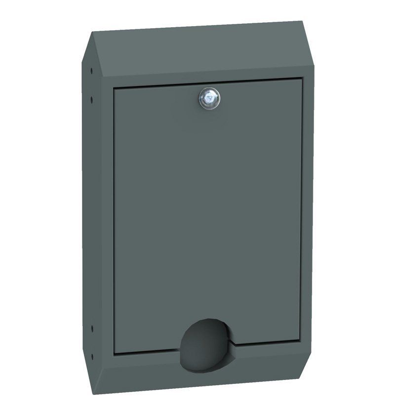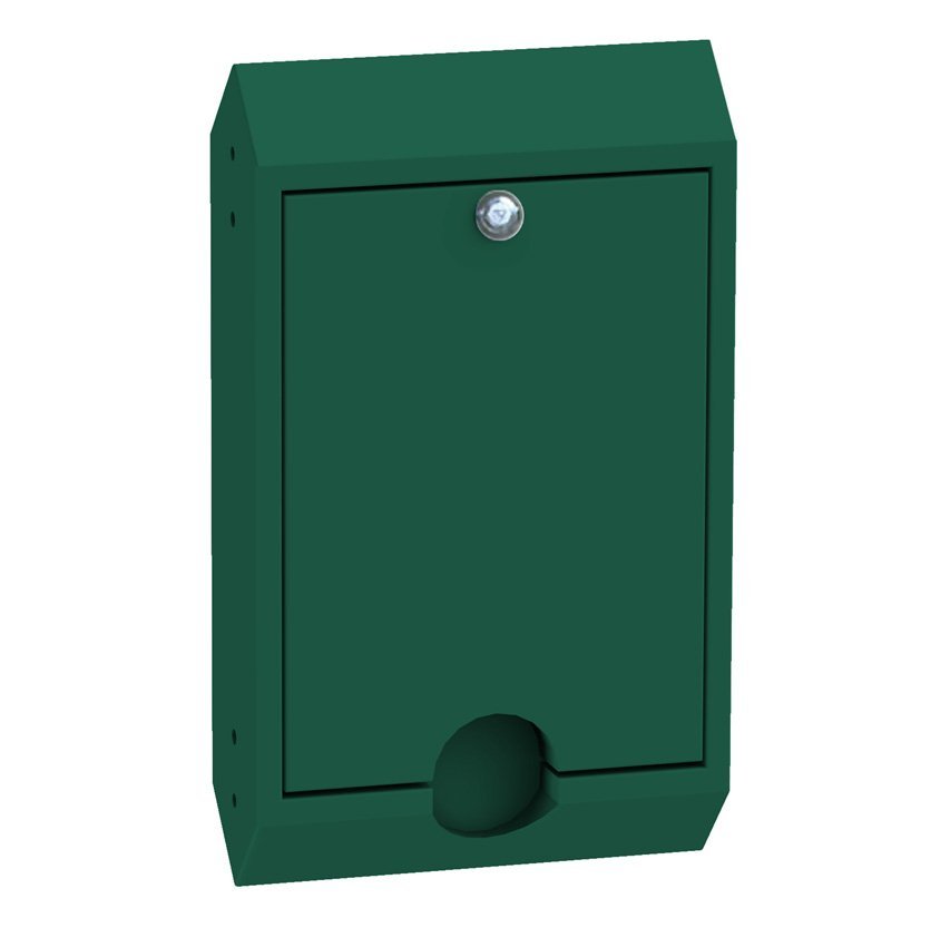 Lockable container for dog excrement bags. Galvanized with exterior powder coating. Height 510 x width 300 x depth 105 mm.