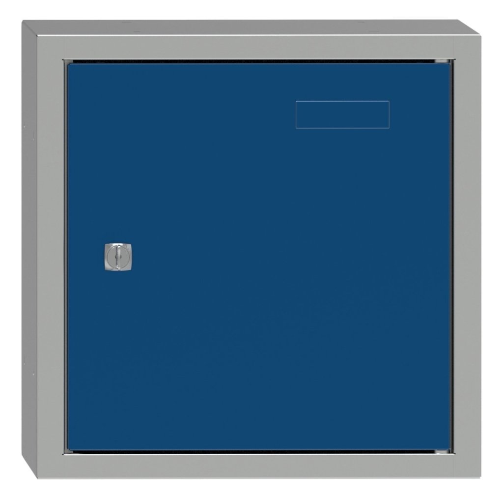 One-door lockable cube, height 350, width 350, depth 426 mm. Body color RAL 7035 light gray.
