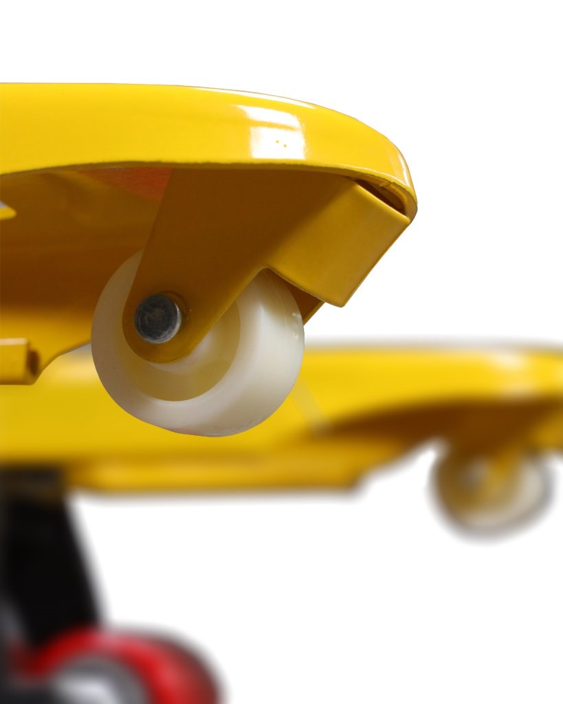 Scissor lift platform equipped with foot-operated hydraulic pump with a capacity of 150 kg and maximum lift height of 720 mm.
