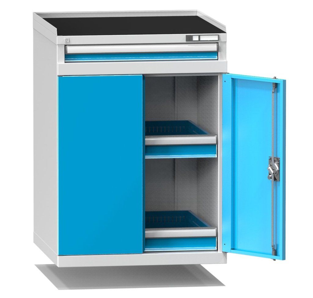 Machine cabinet, drawers width 612 x depth 612 mm (36 x 36D), raised edge 20 mm, rubber mat, 3x drawer - 1x 75 E external, 2x 100E drawer inside behind the door, door, load capacity 700 kg.